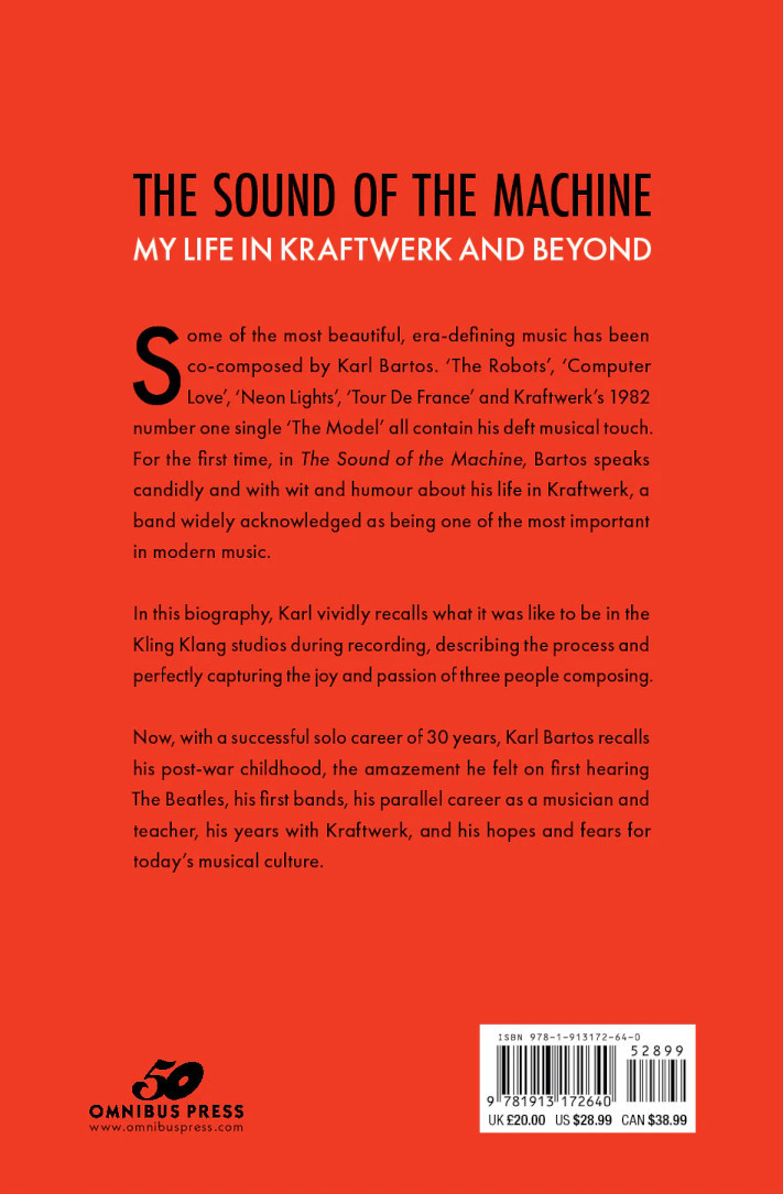 "Some of the most beautiful, era-defining music has been co-composed by Karl Bartos. 'The Robots', 'Computer Love', 'Neon Lights', 'Tour De France' and Kraftwerk's 1982 number one single 'The Model' all contain his deft musical touch. For the first time, in The Sound of the Machine, Bartos speaks candidly and with wit and humour about his life in Kraftwerk, a band widely acknowledged as being one of the most important in modern music. In The Sound of the Machine, Karl vividly recalls what it was like to be in the Kling Klang studios during recording, describing the process and perfectly capturing the joy and passion of three people composing and recording. Now, with a successful solo career of 30 years, Karl Bartos recalls his post-war childhood, the amazement he felt on first hearing The Beatles, his first bands, his parallel career as a musician and teacher, his years with Kraftwerk, and his hopes and fears for today's musical culture."